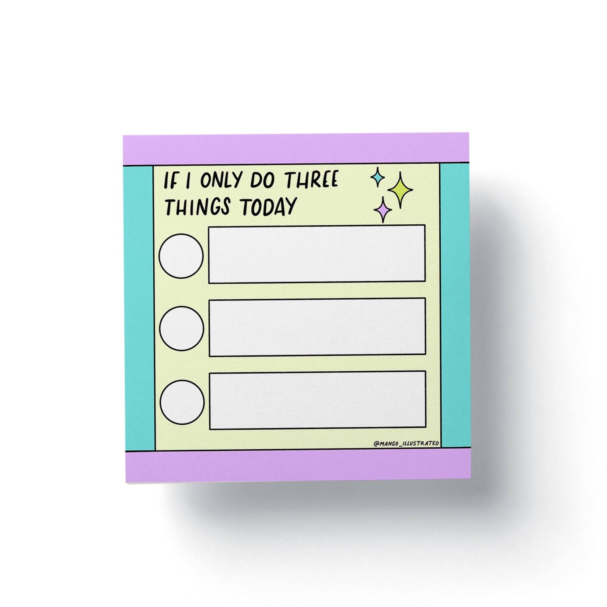 Keep it simple with our "If I Only Do Three Things Today" Sticky Notes. Designed in bright pastels with space to write your top 3 priorities, these notes make your day feel doable—and look cute doing it.