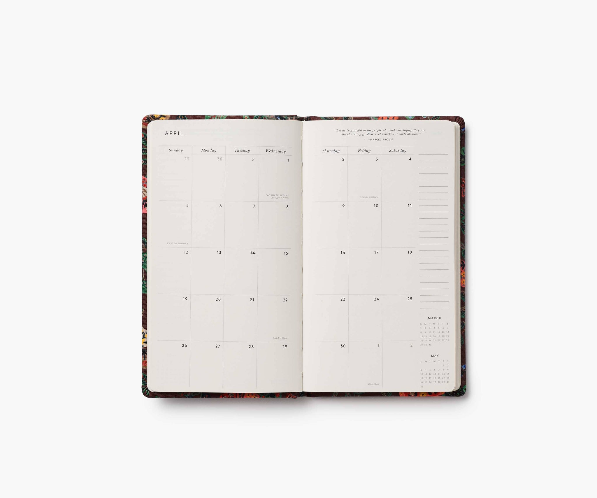 Great things come in small formats. The smallest planner in our lineup, our pocket planner features a hard, fabric-wrapped cover, monthly and bi-weekly page views, sections for important dates and notes, and illustrated interior pockets. Planner spans January - December 2026.