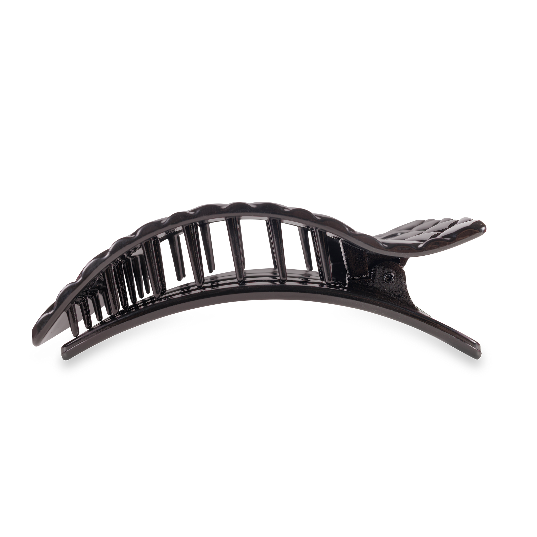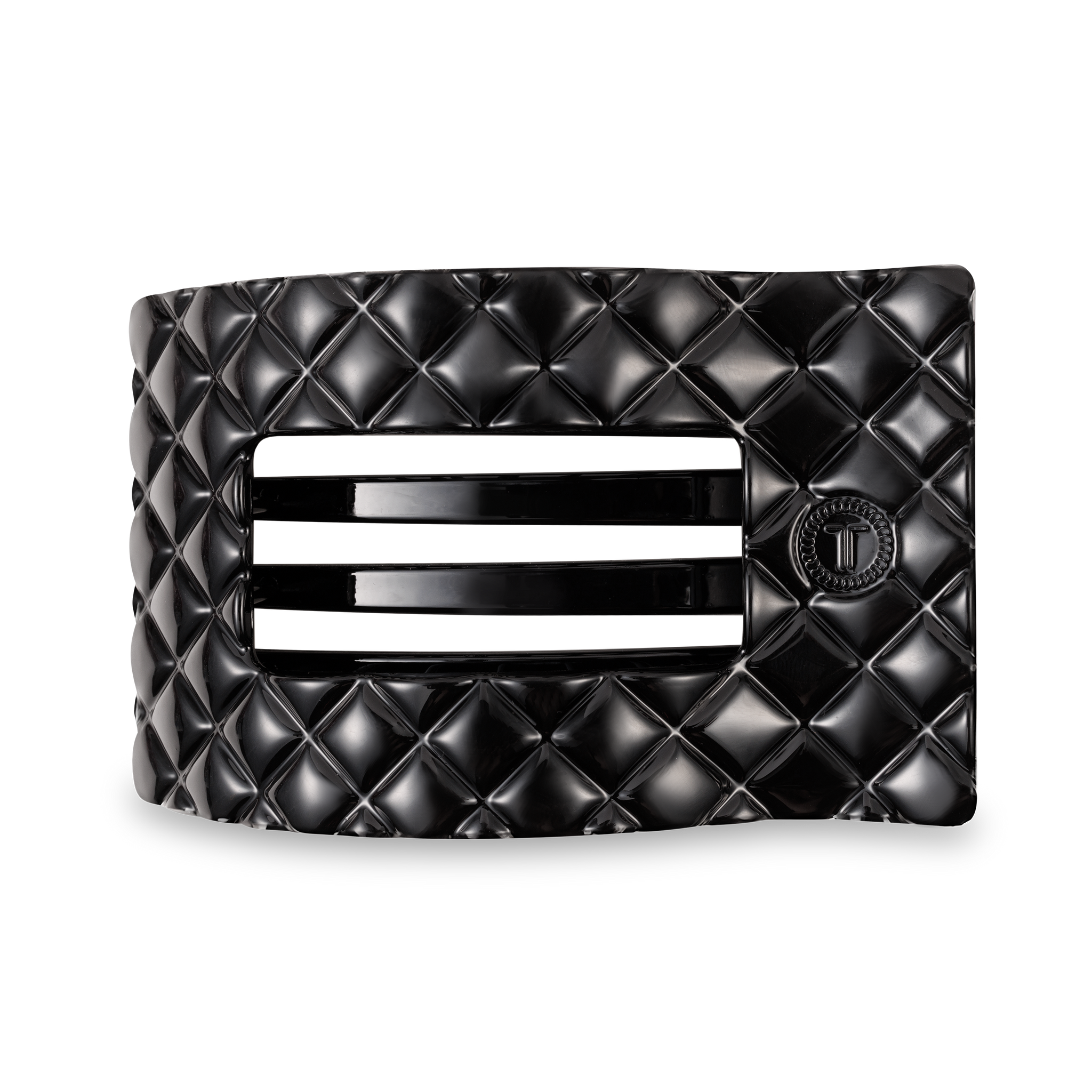 Lean back and relax - comfort just got a new shape. Introducing the TELETIES Jet Black Quilted Large Flat Rectangle Hair Clip, the newest addition to our best-selling Flat Clip Collection. Joining the original Round and Square styles, this elevated rectangular design offers the same flat-back comfort and stronghold TELETIES is known for - now with a sleek, modern style. Flat-back design = comfortable to lay back in Chic rectangular shape adds an elevated, on-trend look Strong, flexible hold with bendable teeth Nearly unbreakable, lightweight material Works for all hair types Perfect for lounging, travel, yoga and daily wear The large size is 4.2 inches long.