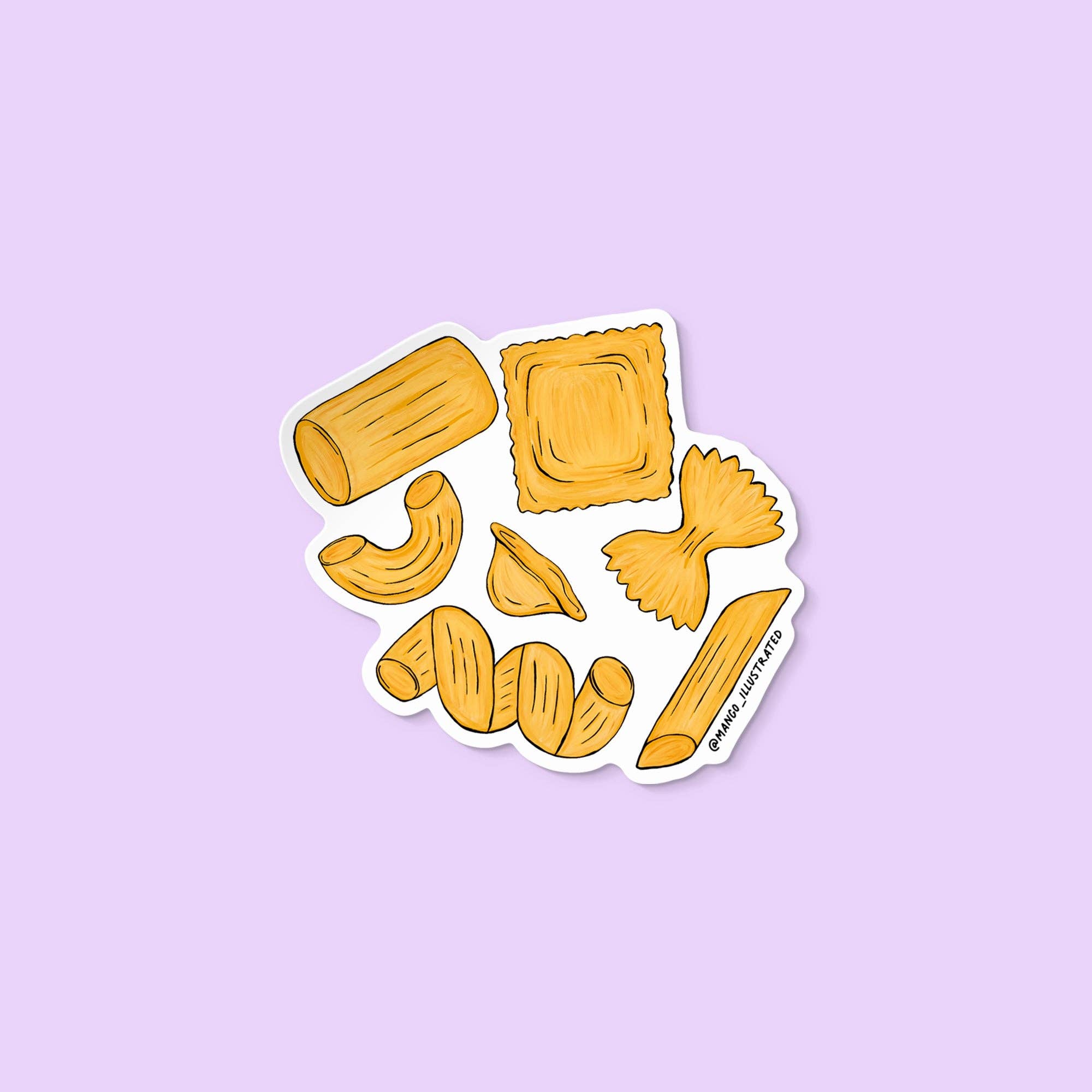 Celebrate your love for carbs with this Pasta vinyl sticker! Featuring a playful illustration of classic pasta shapes like penne, farfalle, rigatoni, ravioli, cavatappi, orecchiette, and macaroni, this foodie sticker is the perfect accessory for laptops, water bottles, notebooks, and kitchen gear. Printed on durable, waterproof vinyl, it’s designed to last through all of life’s delicious adventures. A must-have for pasta enthusiasts, Italian food lovers, and anyone who can’t resist a good bowl of noodles.
