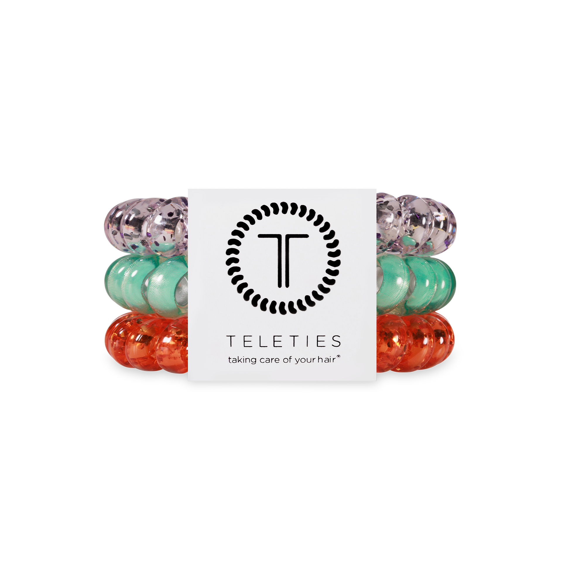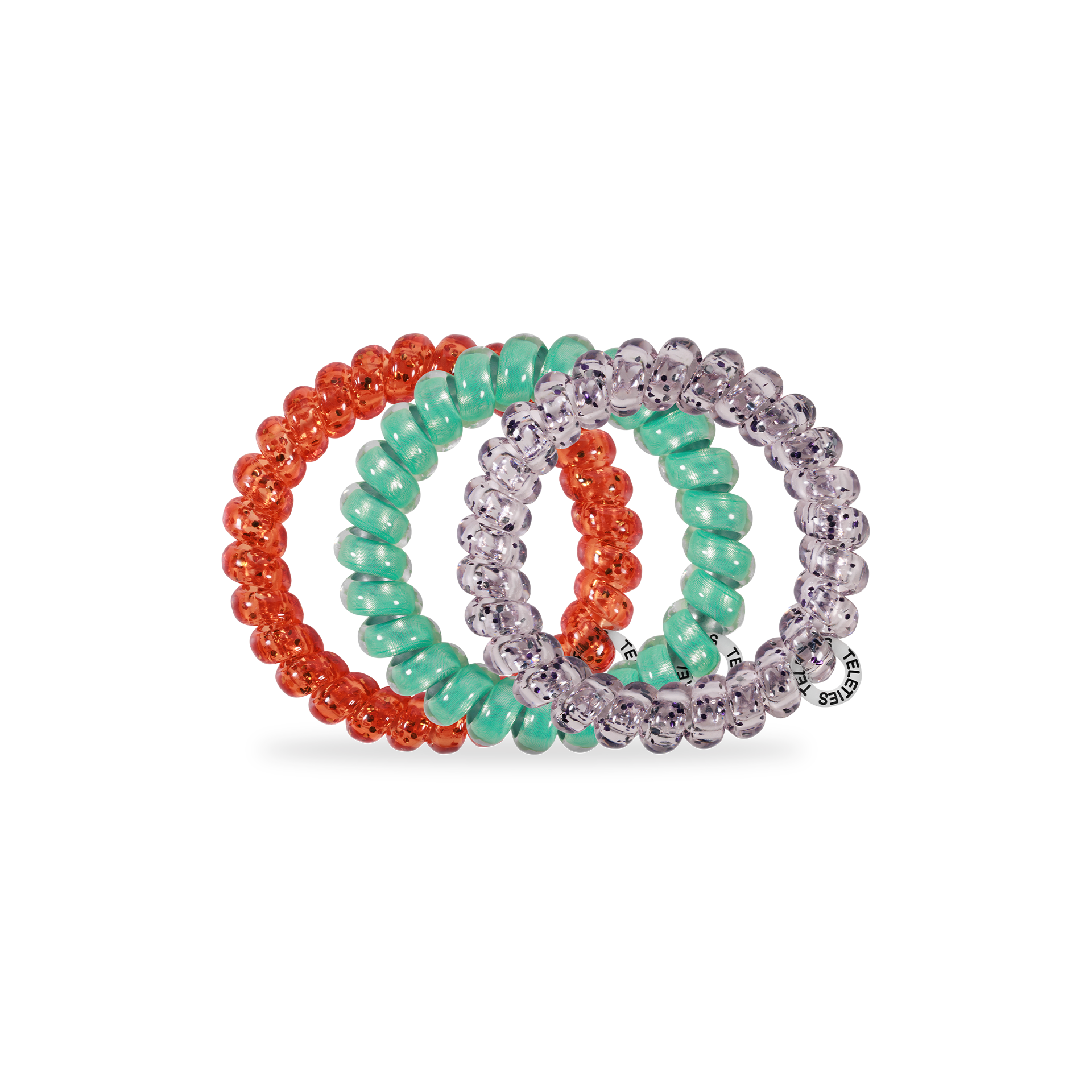 Showbiz Large Hair Ties in Orange and Teal offer a strong grip without damage, doubling as a chic wrist accessory when not in use. Your new favorite hair essentials all year round.